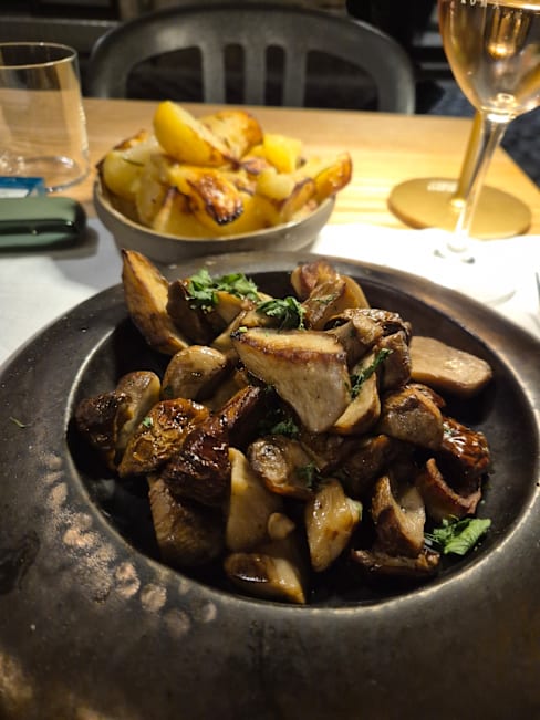 9/10The restaurant was very close to our Airbnb and always seemed crowded so we tried it our last night in Rome. They only had a 7.30pm and sat us outside very close to two other couples near the end with bright lights. Luckily both couples were nice so it worked out. We got a house Chianti bottle for $35, husband got bacala cod and really liked it (not salted) with potatoes. I got my first mushroom pizza in Italy which was wood fired and thin and really good. It was our best dinner in 4 days. Would recommend.