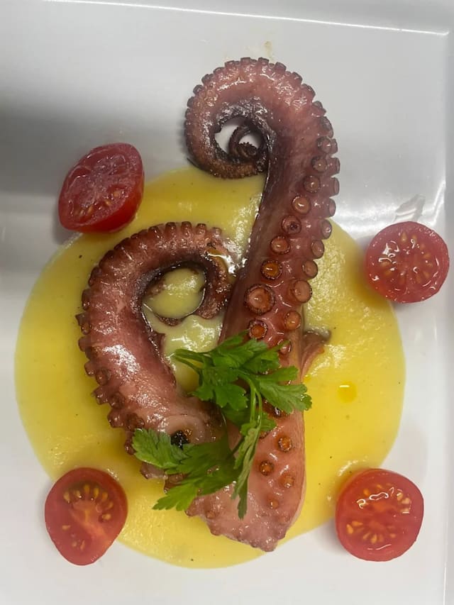 Accompagnés de pommes de terre crémeuses et de moules fraîchement décortiquées, le tout enveloppé dans un délicat bouillan de fruits de mer, pour une rencontre de saveurs méditerranéennes