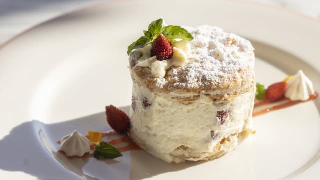Puff pastry, chantilly and mascarpone cream with wild strawberries