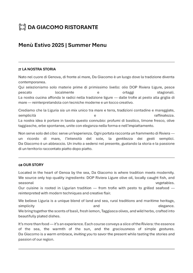 Da Giacomo - Genova is identified as offering italian cuisine.