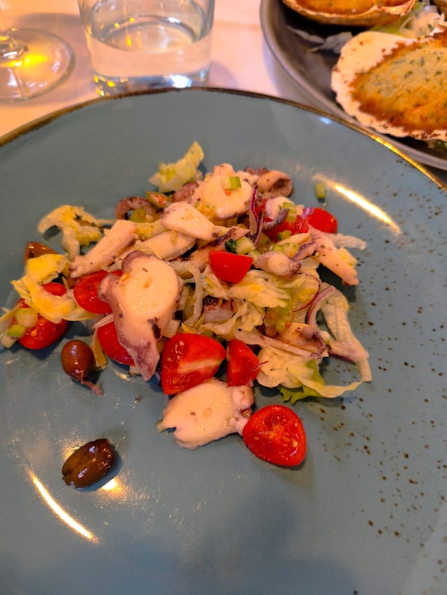 Polpo alla Piastra su Bufala Campana e Pomodorini Pachino