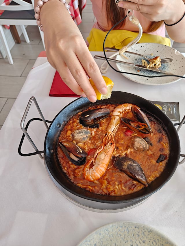 Tomate, mozzarella, frutos de mar mixto, ajo