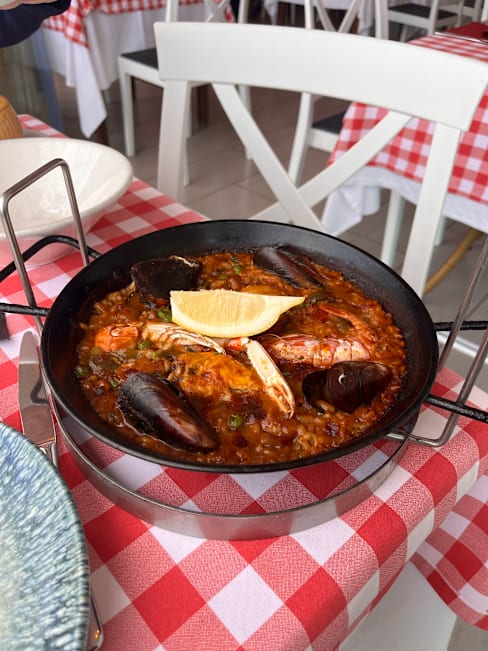 5/10The host said we weren’t on the reservation list so I had to show him the email confirmation that was booked. They sat us (party of 4) in the very back of the restaurant. I asked if we could sit at an empty table near the front of the entrance, which had a view of the sea but was told it was “possibly reserved” with a shrug. It remained empty for 30 minutes. We ordered one bottle of Pelligrino and was given two. We ordered one seafood paella but was given two (one negra and one seafood). We started to get annoyed as it felt like they were trying to cheat us for being dumb tourists. We tried telling the staff that there was an error with our order but they just ignored us until the very end where our waiter wasn’t happy about the situation. They took off the price of the mistaken paella but at that point it had ruined the experience. I would not recommend.