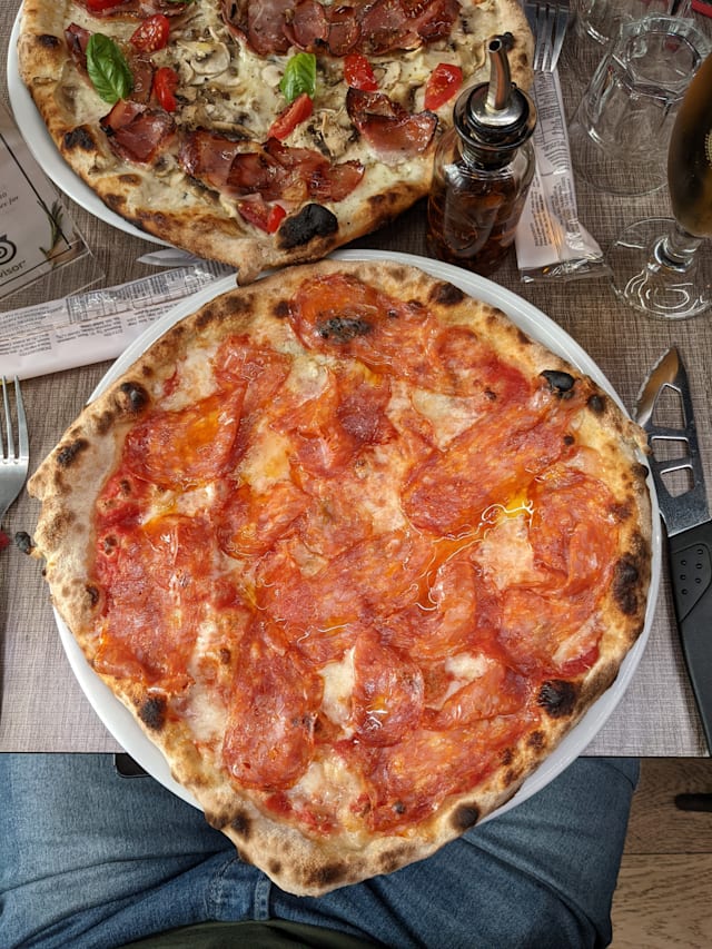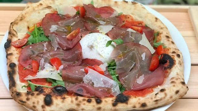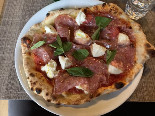 9.5/10Best pizza I've had in ages, maybe the best dough; light but rich of flavour. Also light and rich of flavour was the homemade Tiramisu (with a twist by replacing amaretto with...sorry forgot what it was...). Service was kind and very fast in this very tiny and cozy pizzeria.