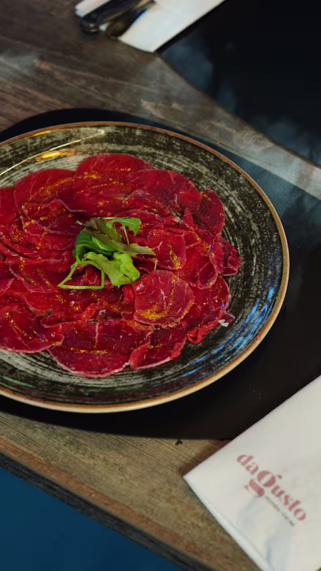 - Carpaccio di manzo con salsa alla senape di digione