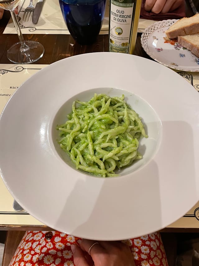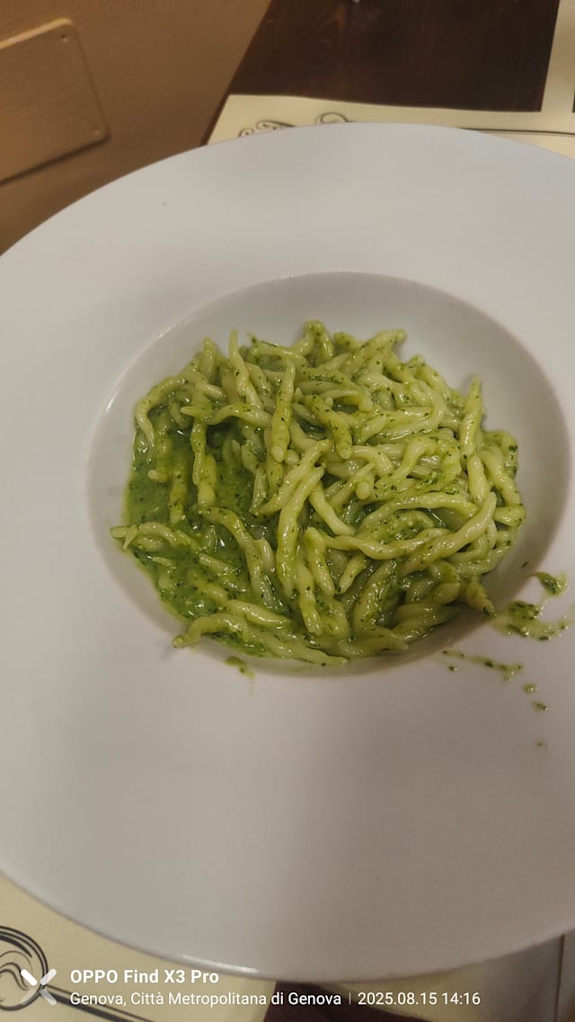 10/10best trofie pesto so far I have in Genoa. service was normal but friendly. house wine was great! dessert was fantastic. highly recommended!!