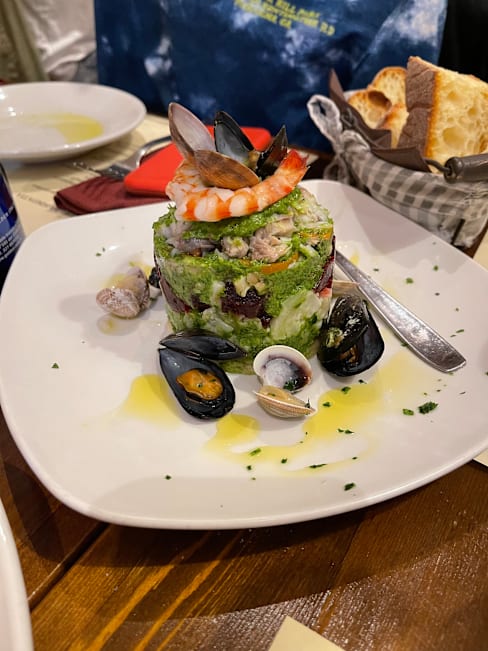 9/10Pansotti with walnut sauce was great. Snails with nuts were a generous portion, but dish was described as having tomatoes, anchovies, capers, and chili peppers, and there was no taste or clear sight of any of that. Pretty much tasted of snails and nuts only. Specialty dessert was pretty much a chocolate pudding, though a nice one.