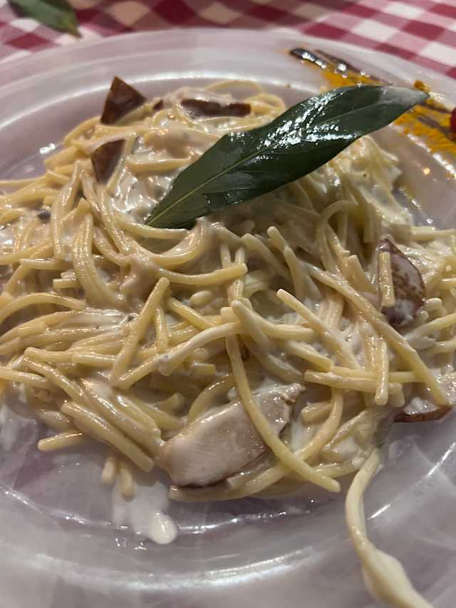 - Tuscan fresh pasta with eggs, pork, pecorino cheese. Pepper and truffle