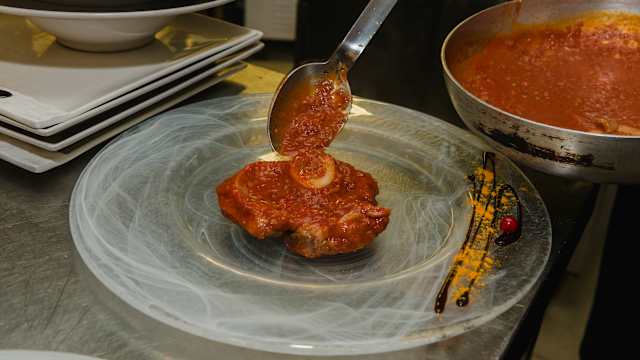 - Beef fillet with truffle sauce and fresh truffle flakes