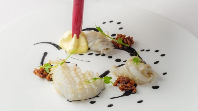 Talgiatelle di Seppia, Gel al Lime, Quinoa e Pecorino di Norcia al Sifone