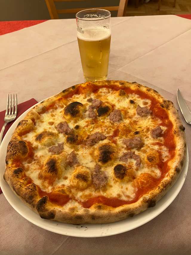 - Pomodoro, mozzarella, luganega, peperoni