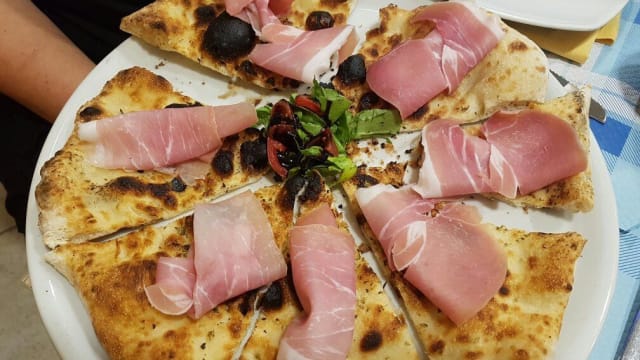 - (Mozzarella olio evo, basilico, prosciutto crudo)