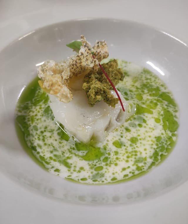 - Cannolo salato ripieno di baccalà mantecato con crema leggera di carciofi e granella di pistacchi