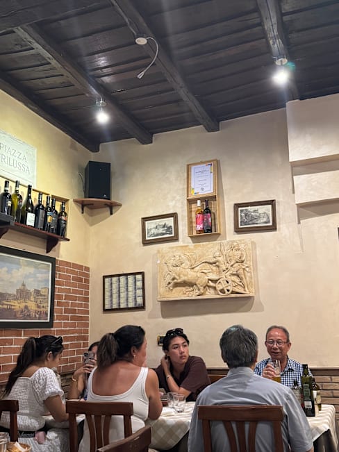 10/10The risotto is amazing. As is the cacio e pepe and homemade gnocchi. My wife and I came here on our 2nd night in Rome, and and enjoyed it so much we can back again for our last dinner in the city.