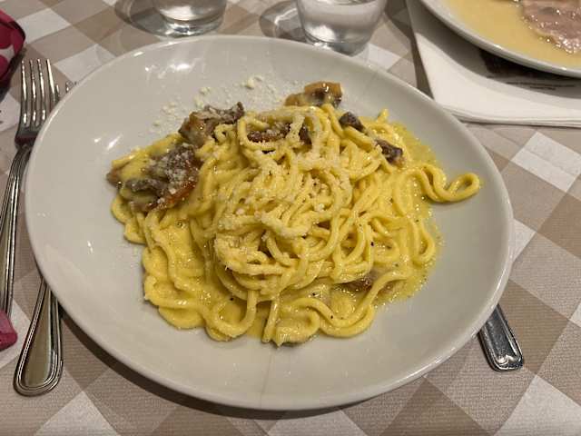 5/10Carbonara was oversalted, but classic, salad and dessert were average, not really tasty. Only suppli was not disappointing. But total price as 70+ euro for two without alcohol feels as waste of money. Also waiting time was 20-30 minutes as there were no other people at that time