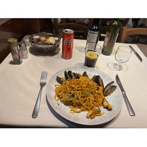 7/10An off the main path small restaurant with friendly staff and good service. We had several pasta dinners that were average quality. The penned arabittria was warm, and a little firm, but with good flavor. The cannelloni and tagliatelle scampi were just average. Bread served cold and hard, so did not taste fresh. The cabernet was very good. Overall I expected higher quality.