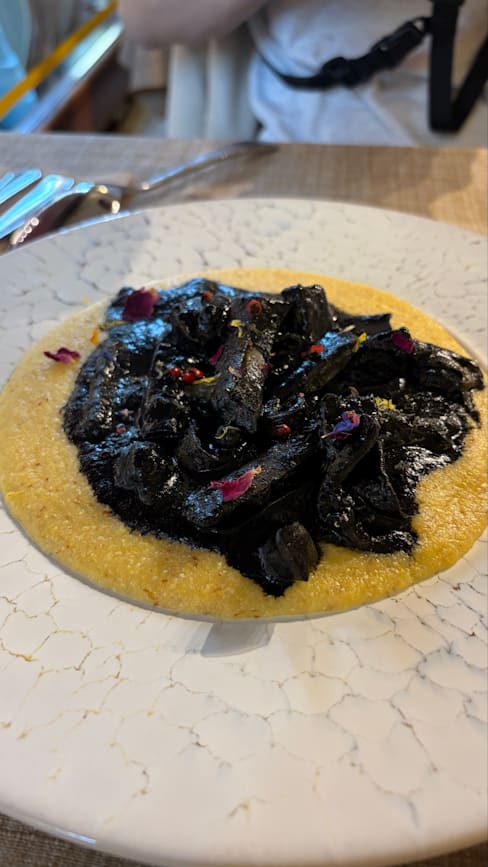 10/10The Seppie alla Veneziana (Venetian Cuttlefish and Polenta) was incredibly delicious! The cuttlefish portion was generous, packed with fresh seafood flavour, and unbelievably tender. We thoroughly enjoyed our meal! The waiter who served us speaks Chinese, which was very welcoming. He was exceptionally kind, explaining the ingredients of the polenta to us in detail, and even checked in to see if the flavour suited us. Furthermore, the complimentary bread was incredibly soft—the softest and most delicious bread I've had during my two weeks in Italy. Dipped in olive oil and balsamic vinegar, we practically finished the entire basket! The restaurant environment itself is very comfortable, and the food and service were both warm and perfect. I couldn't recommend it more highly!