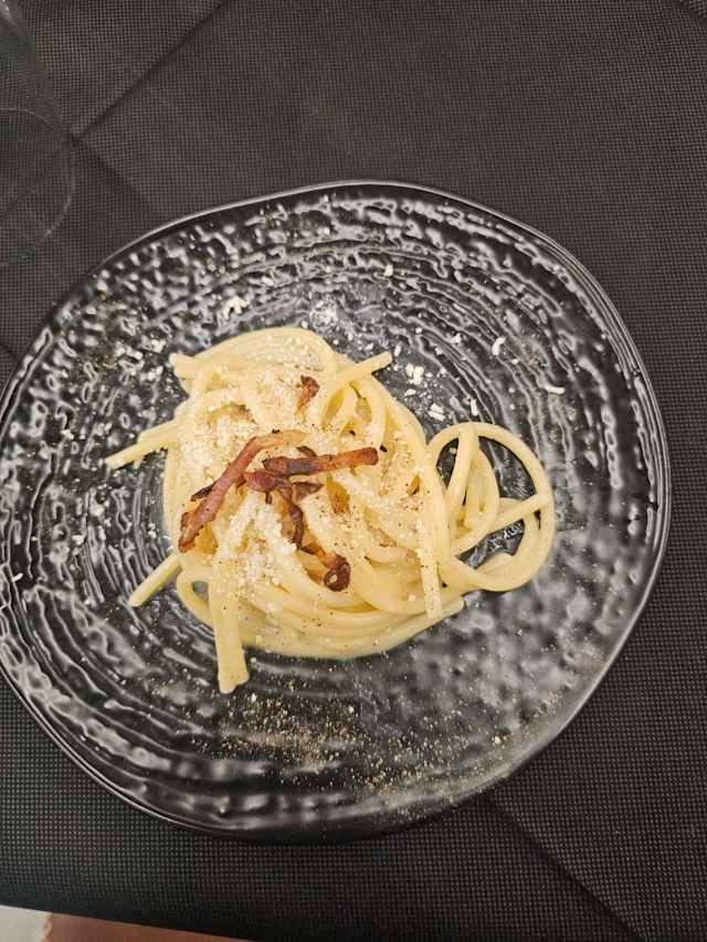 - Spaghettone cacio e pepe con carciofi croccanti