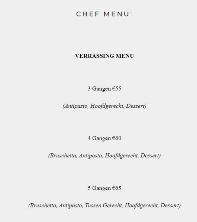 Overall; amazing experience! Owner we know from Hoorn is now running this new location. I was not expecting to get a better dough pizza, like Naples style but that's true! Such fluffy dough topped with generous and delicious ingredients, that we did not want it to finish! A large variety of wines present in the menu along with other delicacies from Italian kitchen. Great price/quality ratio regarding the experience you will have for such good location+service and the food! We really love it!