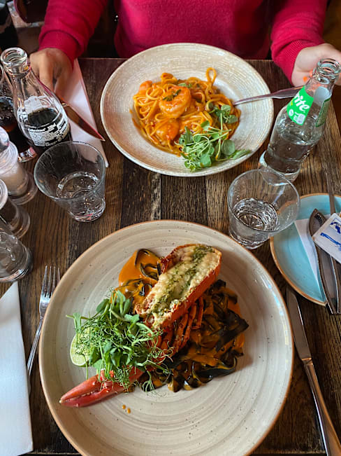6/10The food was average with an okay service. The lobster pasta had an overcooked dry lobster. A pizza we got was also pretty tasteless despite good ingredients in the menu. Carbonara was just mediocre. The waitress was not very welcoming and did not seem to care too much.