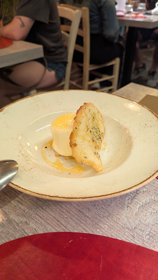 10/10This restaurant is a little gem. We where made welcome by a beautiful young lady called Naomi. She let us sample the house wines and we decided to go along with the white which was of really good quality, although at 12 euros was very cheap for an excellent Restaurant wine. My wife and I had decided to order the same prosecuto ham and melon and when it arrived we had a massive plate full of food which was of really nice quality. Our second course was sea bream and the fish was cooked to perfection with tomatoes and herbs. The dessert was ice cream for my wife and cream brûlée for myself. Both dishes where delicious. We will definitely be back but if you decide to go there book well in advance because by 8.30pm the restaurant was full .