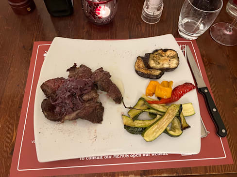 5.5/10The service was amazing — our server was very sweet and knowledgeable. However, I’m absolutely baffled by previous good reviews about the food. I had the “special” which was the duck, and while it was decently cooked, the flavor was completely blah. I ordered a side of the grilled vegetables which also had no flavor. My wife ordered the salmon, which honestly looked more like chicken and was absolutely unappetizing. I’ve made better food at home, and quite frankly, I’m not a great cook. Highly, highly disappointing. It’s a pity too, because there is so much amazing food in Florence and again, the service was wonderful.