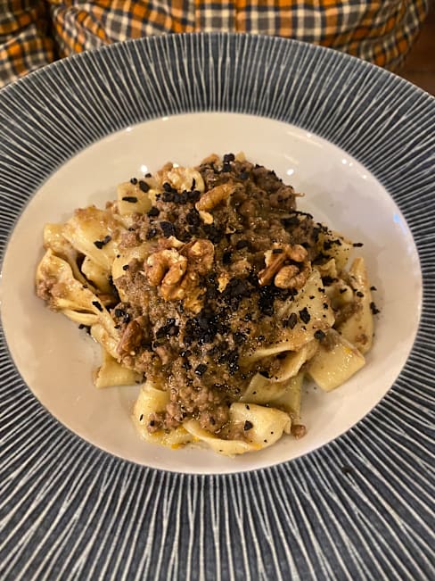 10/10This was an utterly unforgettable experience, in a stunning medieval walled town we sat in a spacious semi- alfresco terrace and had a relaxed tuscan feast. I had a first course of pici (giant tuscan spaghetti) followed by a strip steak which blew away any of London's specialist steakhouse at a fraction of the price and washed it down with a glass of barolo. A must visit gem.