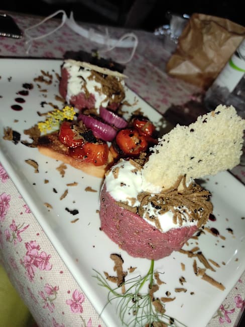 8.5/10One of the nices places I have eaten, but they need more stuff for sure. We waited for eveything a little too much.. a host and than the waitress asked as which water do we want and than we had to ask for still water 2 more times because the waitress could catch it all. Bread that we got was really nice and you could feel that it is home made but it was dry. Tris di tartare blow my mind, vegetables were delicius, but tagliata di chianina was a little bit hard to chew. Cheese cake ai fruti di bosco also delicius. All in all there is room for improvement but I am definitely comming back for that tartar!
