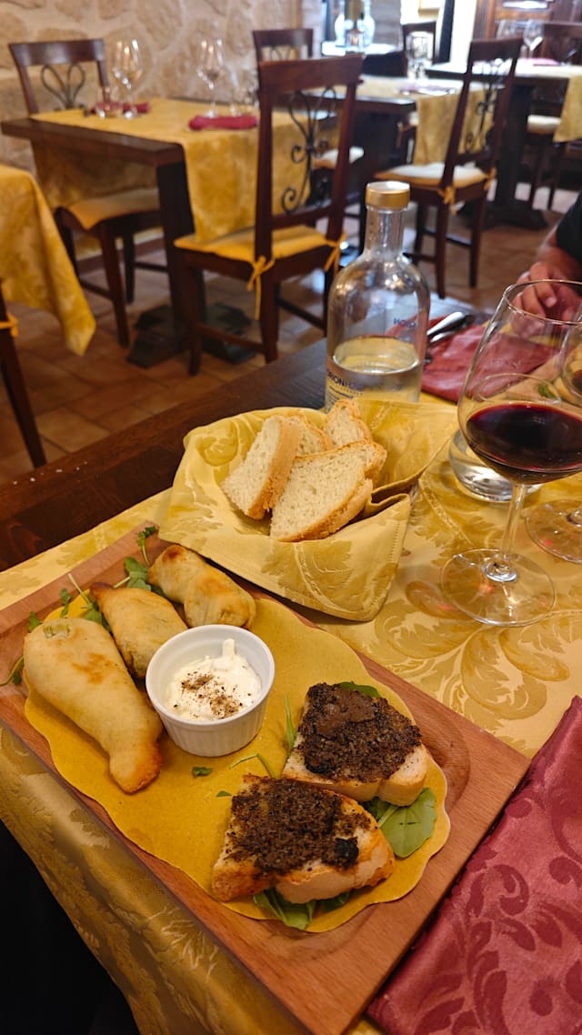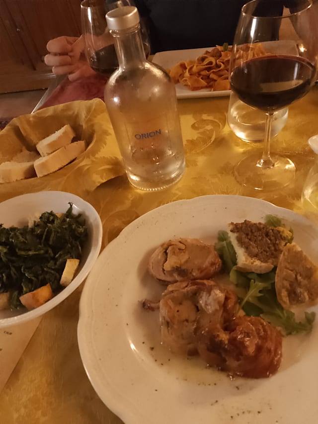 10/10A wonderful place with a Masterchef. All dishes excellent, freshly prepared, and more than abundant. After ending up with the Fork google maps in front of the sanctuary I phoned and a few minutes I arrived at the right place. I explain here because the Fork is unable to change the wrong address : leave the church at your left, proceed to the traffic light (semaforo, gira destra) turn right and follow the street to the little Borgo. That is the building Torre San Giovanni. It is NOT the name of a village but of the building!!! Big parking. At the moment the menue offers fresh black summer truffle. I asked to mix two starters as I couldn't decide what to choose. My Primo was Tagliatelle with truffles (too big to finish and they packed it for me to take away), the main course was beef tartare again with fresh truffles. Could be shared for two people or you are a hungry man. The dessert I couldn't manage anymore ????. A wonderful bottle of white Montefalco wine (recommendated by the waiter to accompany well all my menue), also this bottle I took back to the hotel, otherwise I risk to loose my driving license. The garden ambiente is wonderful, small but enough distance. Lots of roses and other flowers. The service is very attentive, polite and friendly. The host, Mrs Rosary, is a very elegant and charming lady, it was a big pleasure to talk to her and to learn about the Sanctuary of Madre Speranza. Next time I shall book a room in the hotel, so I can drink more and eat at least twice there. A wonderful experience, thanks to The Fork, I wouldn't have found otherwise.