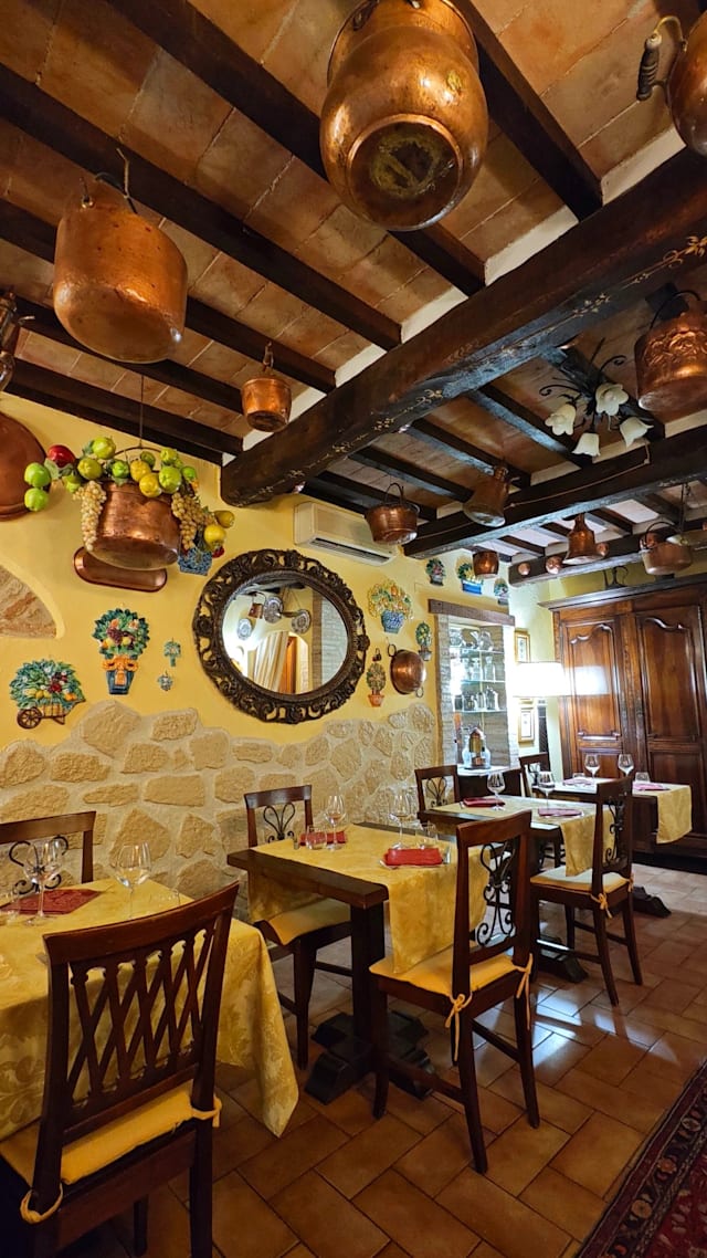 8/10Lovely atmosphere. Lots of religious icons/statures and paintings on the walls. We had a nice lunch. The menu is meat heavy - I would appreciated something lighter like some chicken ....or fish. However it was a good lunch. I wouldn't go back due to the over-the-top religious stuff, crucifixes, a big Jesus, and paintings of a nun. Too much for me. Food is good and atmosphere warm and cozy.