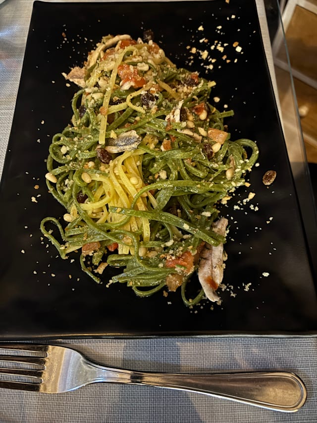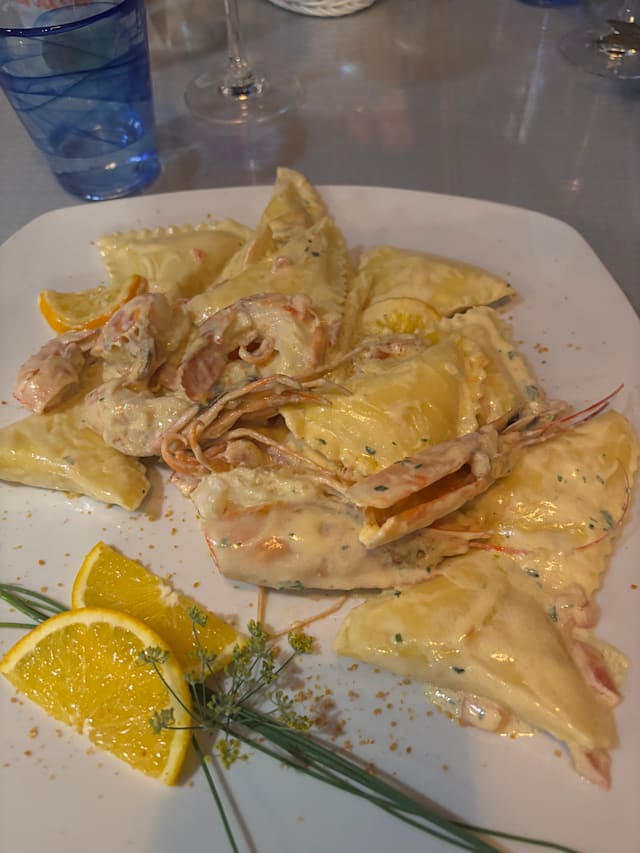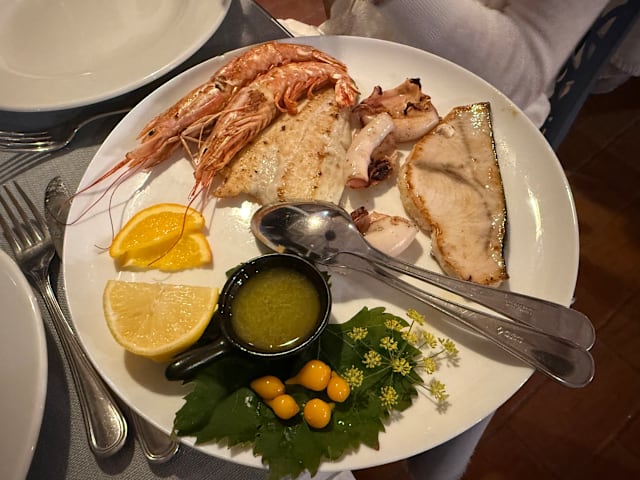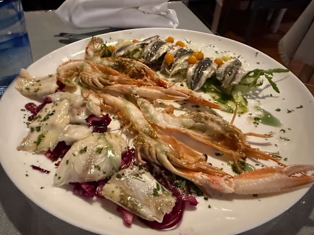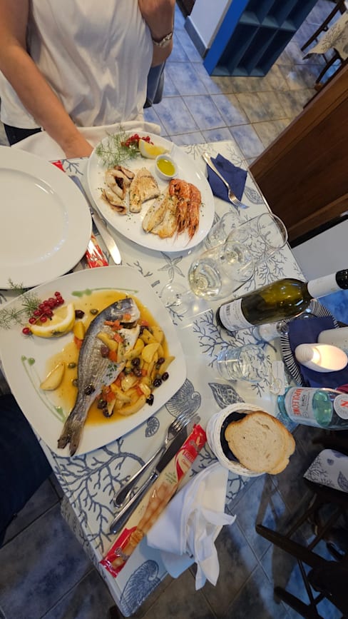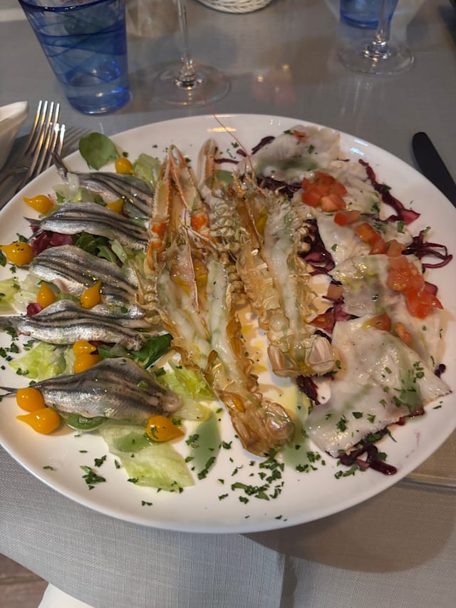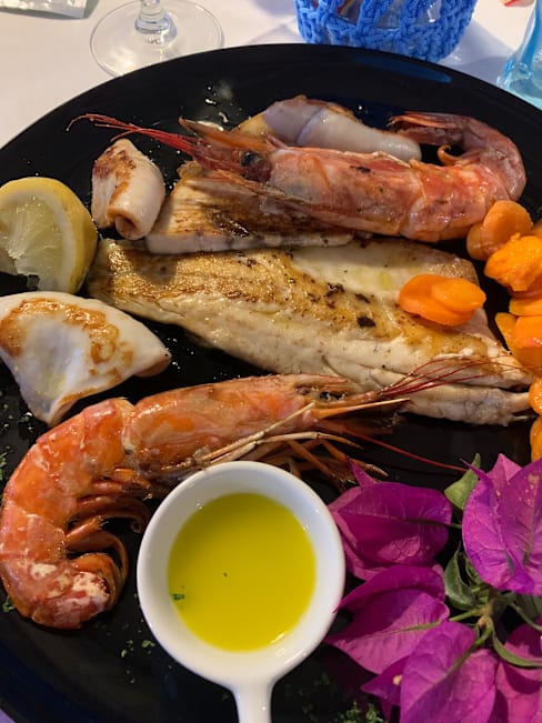 10/10Memorable dinner experience. Beautiful surroundings half open patio with sea view. We tried the fantasia dello chef as entree. We were glad we decided to share because it were two servings. First warm with mussels and clams, octopus in a wonderful sauce and baccala with potatoes. Then the cold part with smoked fish and fish in agrodolce (fresh sweet/Sauer taste). All beautifully prepared and delicious. As main we had orata prepared in the oven with potatoes and cherry tomatoes. A simple dish but it showed the skills of the cook. The fish was just right, tender, juicy and perfectly seasoned. The potatoes were infused with the tomato and fish juices a delight ! The homemade desert was lovely a semi-freddo torte with chocolate and apricot. Excellent value for money. We were highly recommended this restaurant. We will certainly go there again before we leave ????