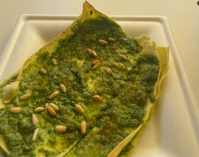Mozzarella di bufala, pomodorini, pesto, pinoli