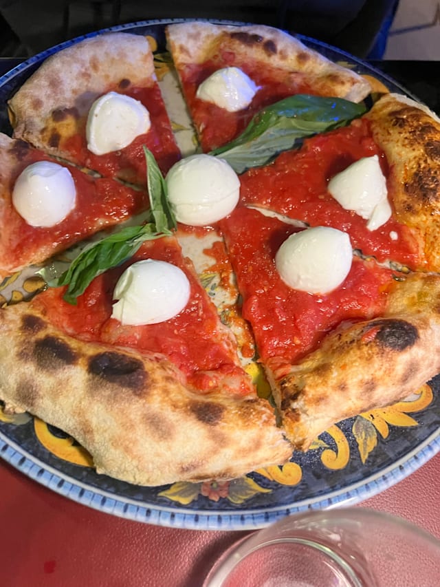 Fiordilatte di napoli, provola di agerola, funghi porcini e champignon, burrata di bufala campana DOP, petali di tartufo, olio evo, basilico