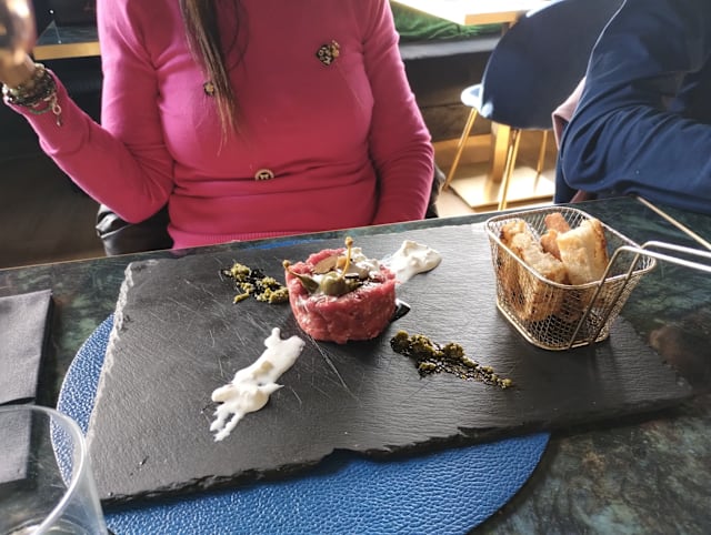 Battuta di fassona, stracciatella di bufala campana DOP, pesto di basilico e tartufo