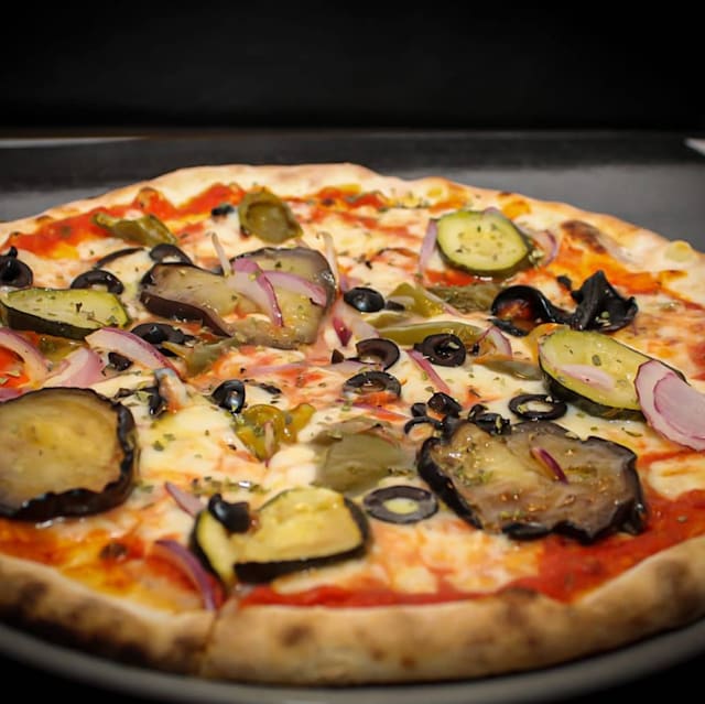 - Tomate, carne picada pimiento rojo, bechamel,berengenas, parmesano y mozzarella