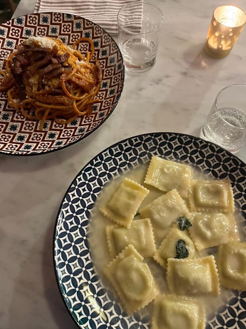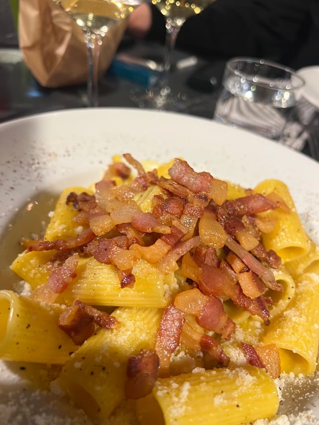 4.5/10The service was good. The wine was fine. My veal saltimbocca was tough and inedible. My husband’s rigatoni was beyond al dente, almost unchewable. The bathroom needed repairs.