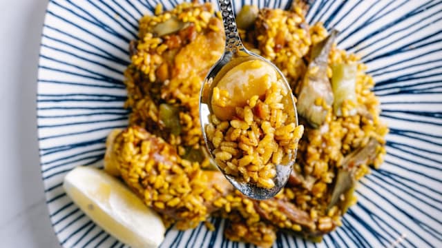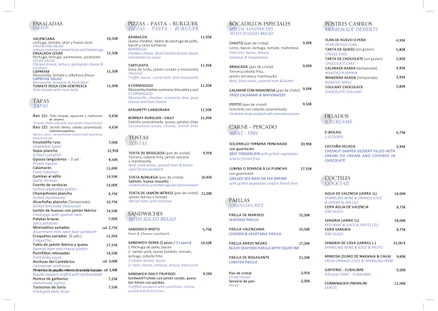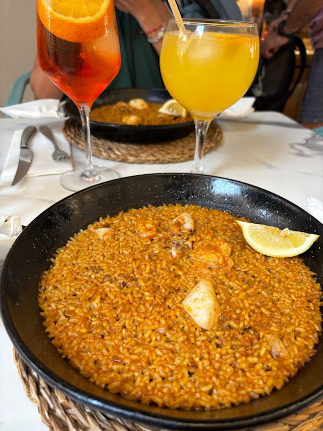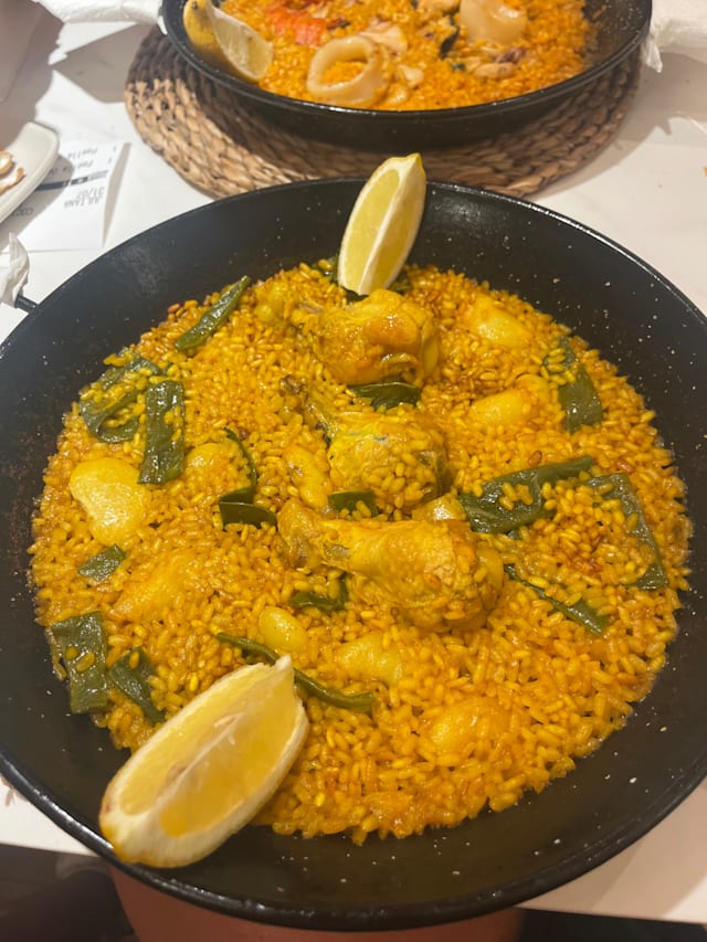 10/10in this review I will write about two different occasions, because the last time it was sent without being finished. In both occasions we ordered one set menu (which has no discount) and a plate. The menu has a starter, 1st. one was ravioli of cucumber with ricotta cheese and spinach (5/5) and the 2nd. was 3 half eggs, that I'm not sure what had inside (4/5). For main dish we had 1st. paella de pescado (did not have this name, but I can recall the correct one, it had a cream which was meant to be mixed) (5/5) and the 2nd. was meat paella (4/5). For desert we selected 1st. cheese cake (which is tarta de queso and not like a cheesecake) (4/5) and the 2nd. a coffee flan (5/5). To drink we had 1st. Sangria (and as they say "in Valencia sangria se hace buenas") (5/5) and 2nd. Agua de Valencia (5/5), even thought we preferred the sangria. The staff was incredible and the place is cute and well located. We came back because we loved it. Recomend.