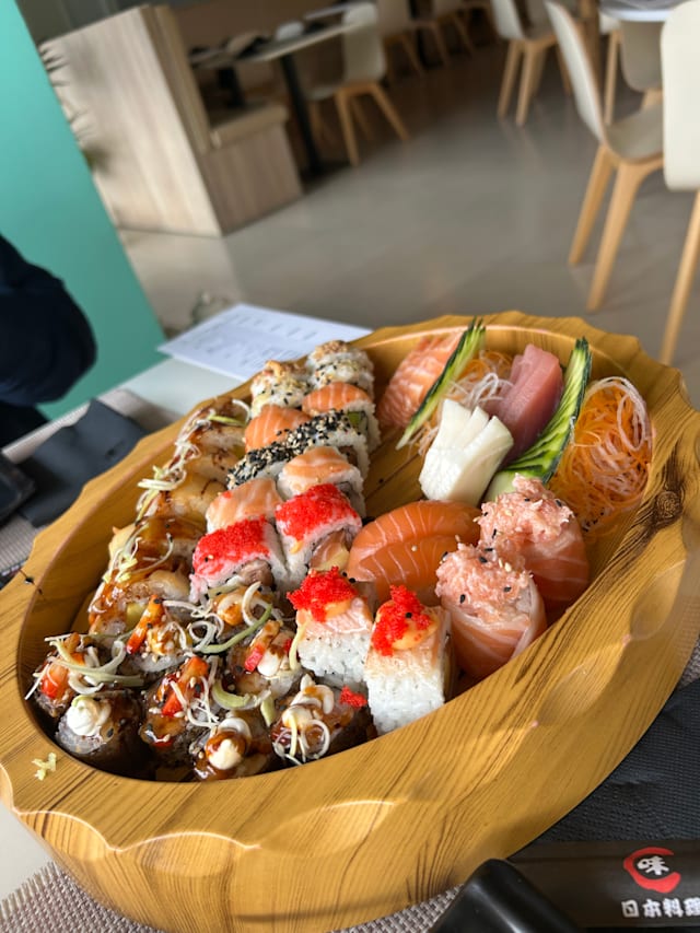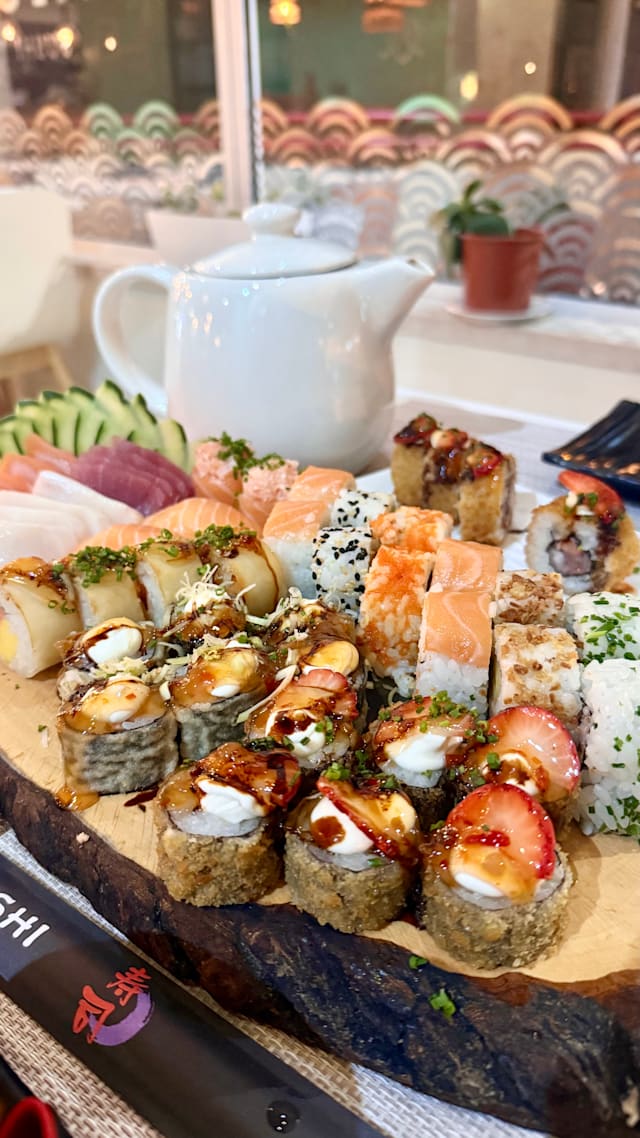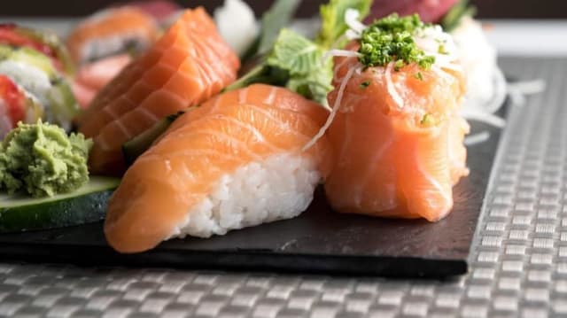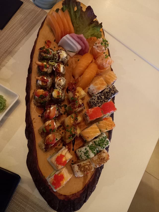 Salmão, alface, pepino, abacate, tamago com wasabi mayo