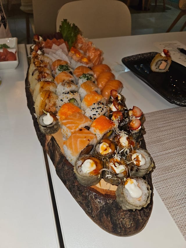 Abacate, pepino, manga, philadelphia enrolado em papel de arroz c/ wasabi мayo