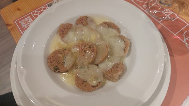 Canederlini in fonduta di formaggi di 5 malghe dolomitiche differenti e speck dal marcante