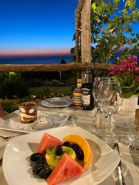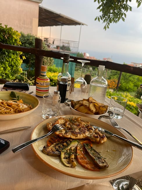 10/10Beautiful vista looking over the Bay of Naples in a garden terraced area. Set high up in the hills, the drive to the restaurant may be a little nerve wracking for a tourist but the payoff is worth the effort. Need a reservation for the edge tables with the best view of the bay. Great service from Donato who can converse in English. From the restaurant you can see Mount Vesuvius and Capri. Idyllic place to be at sunset.