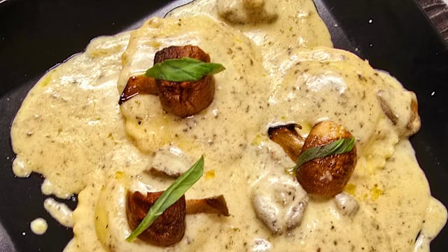 Sauce tomate, mozzarella fior di latte, jambon de volaille, champignons, olives, œuf