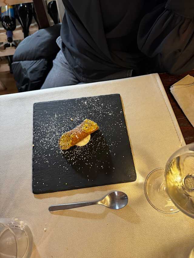 10/10We were really impressed with the food at this place, it was like stepping into an Sicilian house and being served their best dishes. Everything was delicious from the sharing platter we had as a starter through the mains and desert. We even got offered a free shot of spinamara, a digestive alternative to lemoncello. Service by the owner was friendly and fast. We’ll definitely be back when we’re in Perugia.
