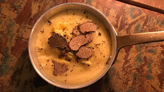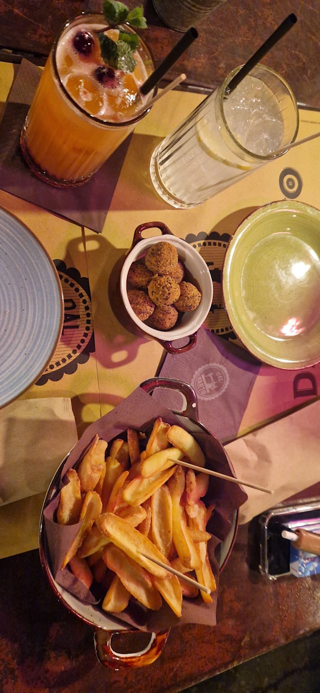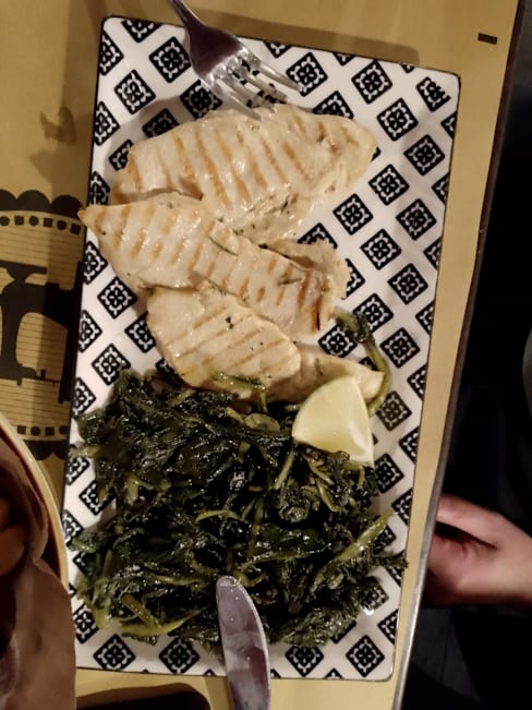 6/10+1We where 5 people that booked, most of us took pizza and some took chickenfile' with big homemade pommes frites. It was a rainy evening and we where sitting outside on the terrace, its with roof and windows out on the street and we sat in a good and dry location. The food was taste good for all of us, service was also good, with a general medium score on the food.