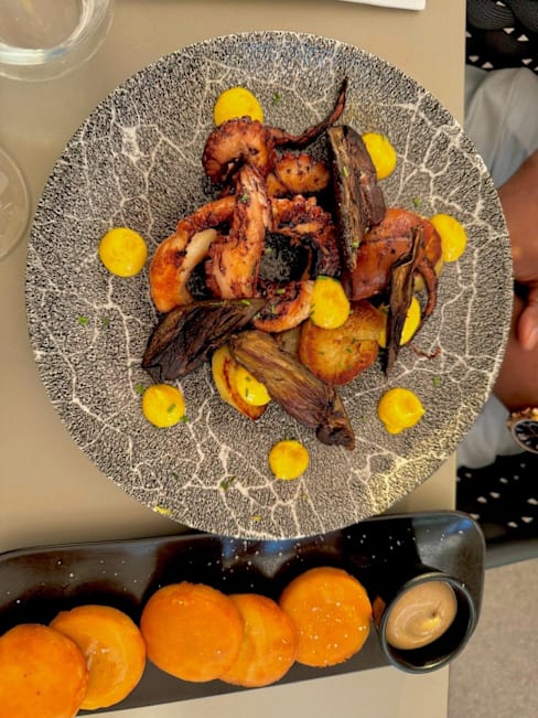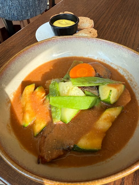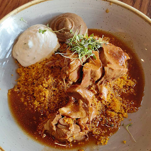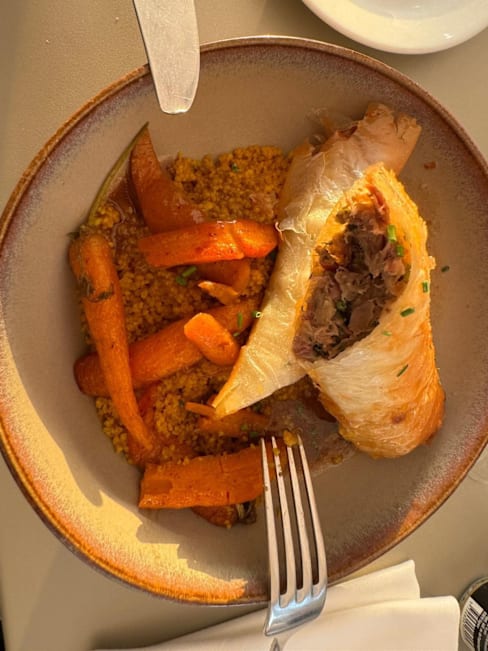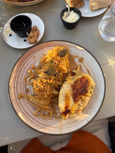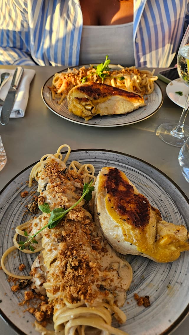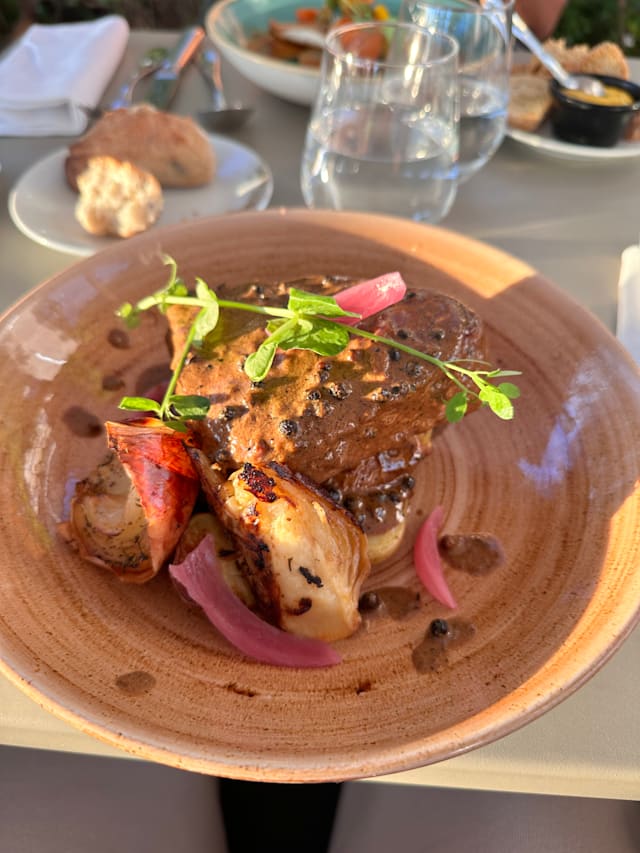 9/10Cake of the day was pistachio Paris-Brest which was amazing! The Moroccan influenced mains were also exceptional. The only downside was that the sun around sunset is very harsh and the canopy wouldn't help very much if you want to sit closer to the coast. The discount was opt for 30% off but you only get 20% off at the restaurant which was slightly disappointing but otherwise all good.