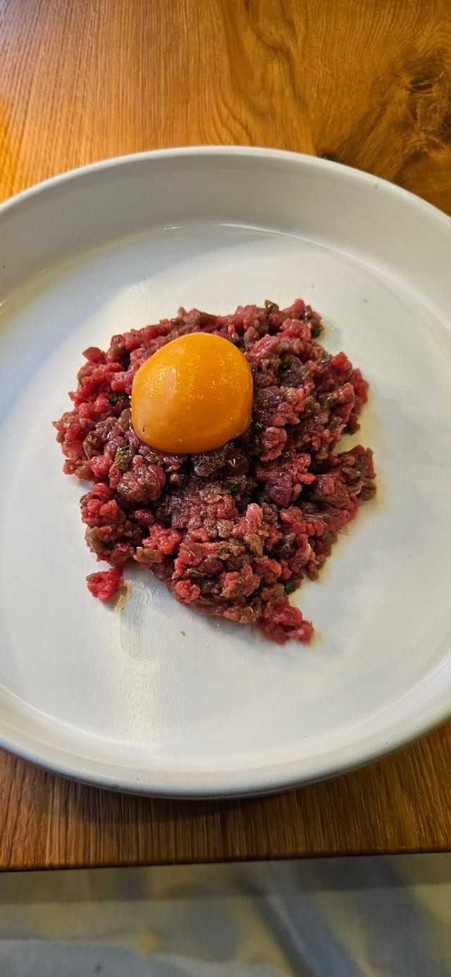 8/10Great tasting and creative food. However, oneof our ravioloni was warm, one cold. Somewhat out of order service, eg bread served after antipasto. Waiter offered dessert before we were served main. They were nice perhaps too busy. Our language barrier contributed to our uncertainty. Great wine suggestion. Quiet modern room. OK chairs of different kinds.