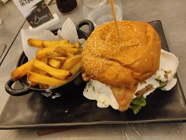 7.5/10+2We had pizza, calzones and burgers at Dami, a little neighborhood place in Palermo, on a quiet side street just outside the touristy area. They only do pizzas and burgers so they have a great selection to choose from - something for every palette. Everything was very good and the service was too.
