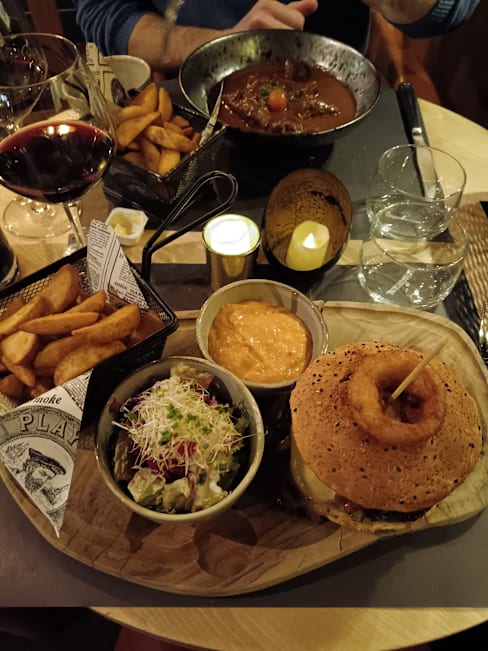 10/10The area is charming but quite touristy, which initially made us hesitate to book. However, this place is far from a tourist trap. The service is attentive yet unobtrusive, and the staff are incredibly kind. We even had the chance to meet the owner and exchange a few words. The design suited our taste perfectly, and the atmosphere was delightful. But the real highlight was the food, both in quality and quantity. We ordered a burger and a carbonnade, served with fries and salad, and they were absolutely delicious! We’ll definitely be coming back.