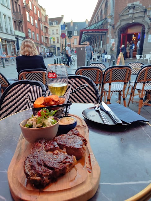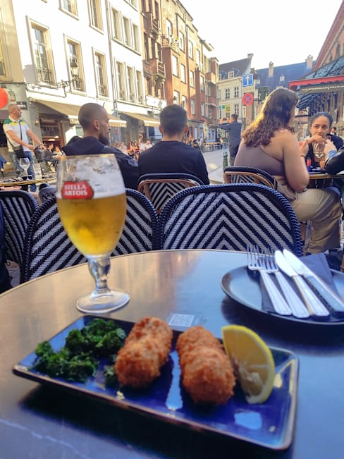 7/10All in all it was a good evening, the food was good, the service very friendly, maybe a bit inexperienced and a bit disjointed. So we opted for a few starters to share, the quality and value for money of the Planche with Cheeses and Meats was very good, at least 3 or 4 different hams, and the same with cheeses, as well as Cornichons, cooked veggies all super for the price, actually surpassed expectations. The two croquettes however were not really worth the price, le fondant de Parmesan small and very standard fair, the croquette de Crevettes, very much the same one would be able to buy those in a supermarket. For mains, we had Belgian foods, the Boulettes were dry, but the sauce and fries were good, the ‚Carbonade‘ and the Beefburger were very good , although not very hot. We would have drank a little more, but despite the seats beside the counter, ordering was not quite as easy. In fairness it was a hot evening and the terrace was packed full. All in all a good experience