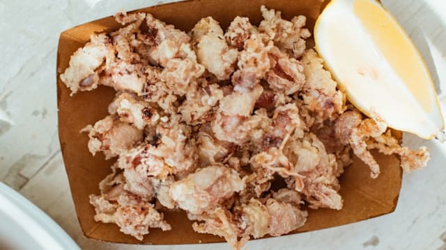 Panino con tentacolo di polpo grigliato, stracciata di bufala, radicchio fresco e noci